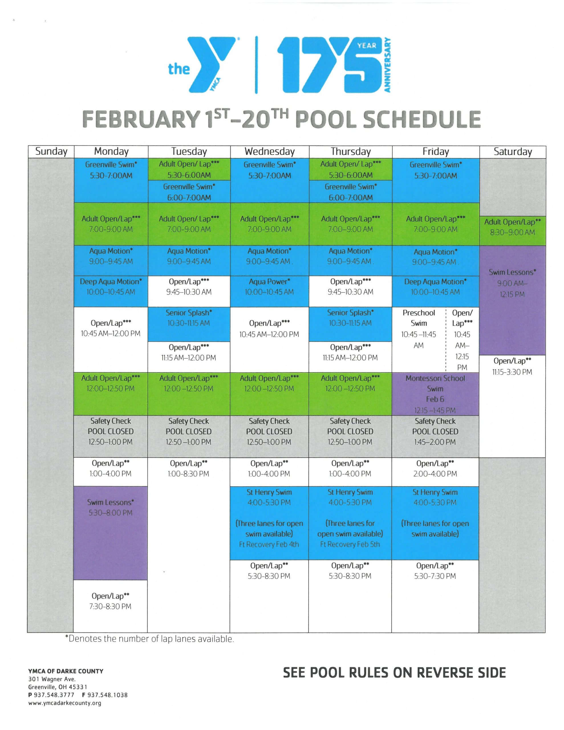 Check out our pool schedule below, and visit our calendar for daily listings of our group exercise classes.